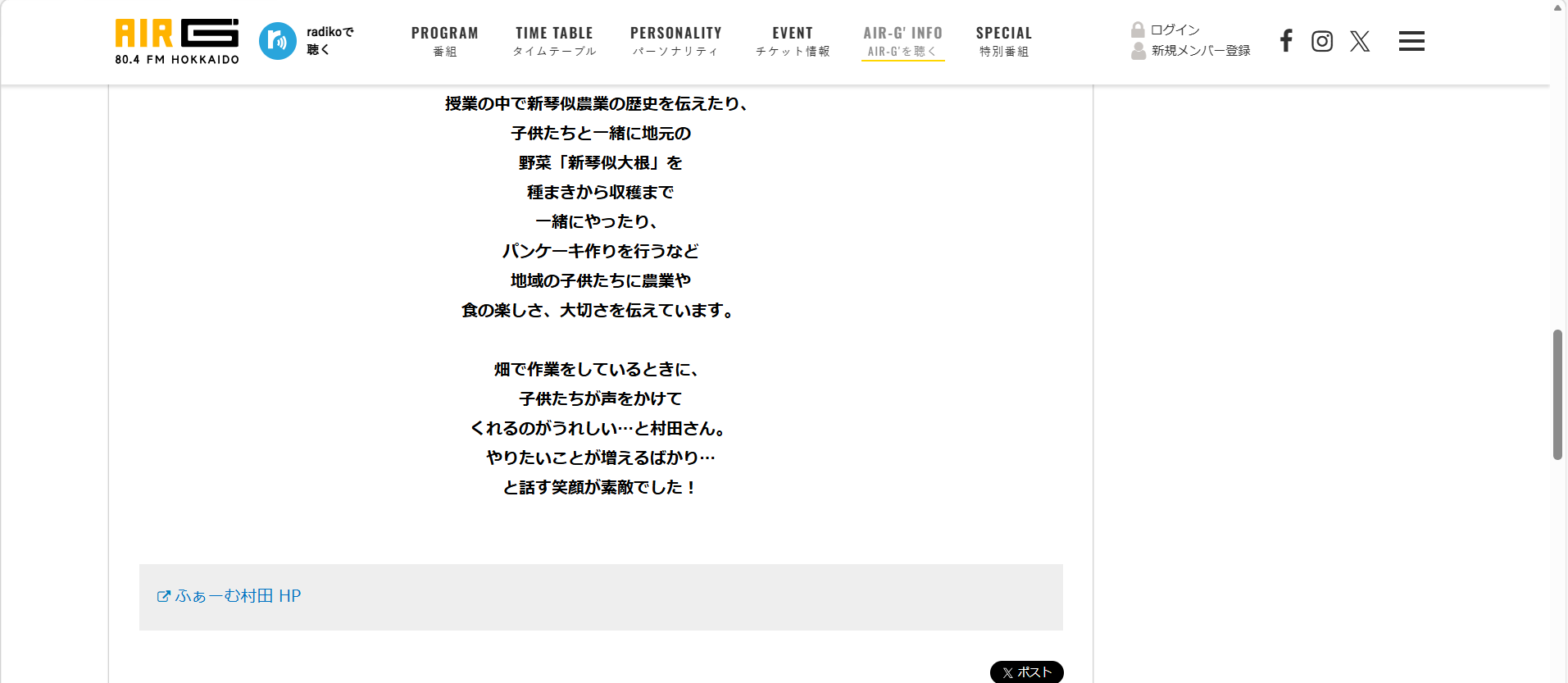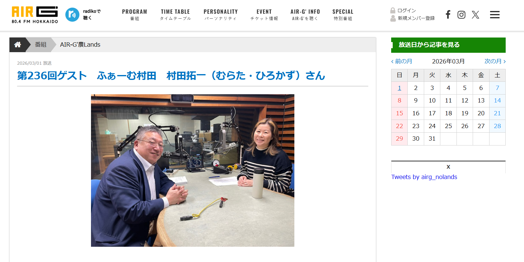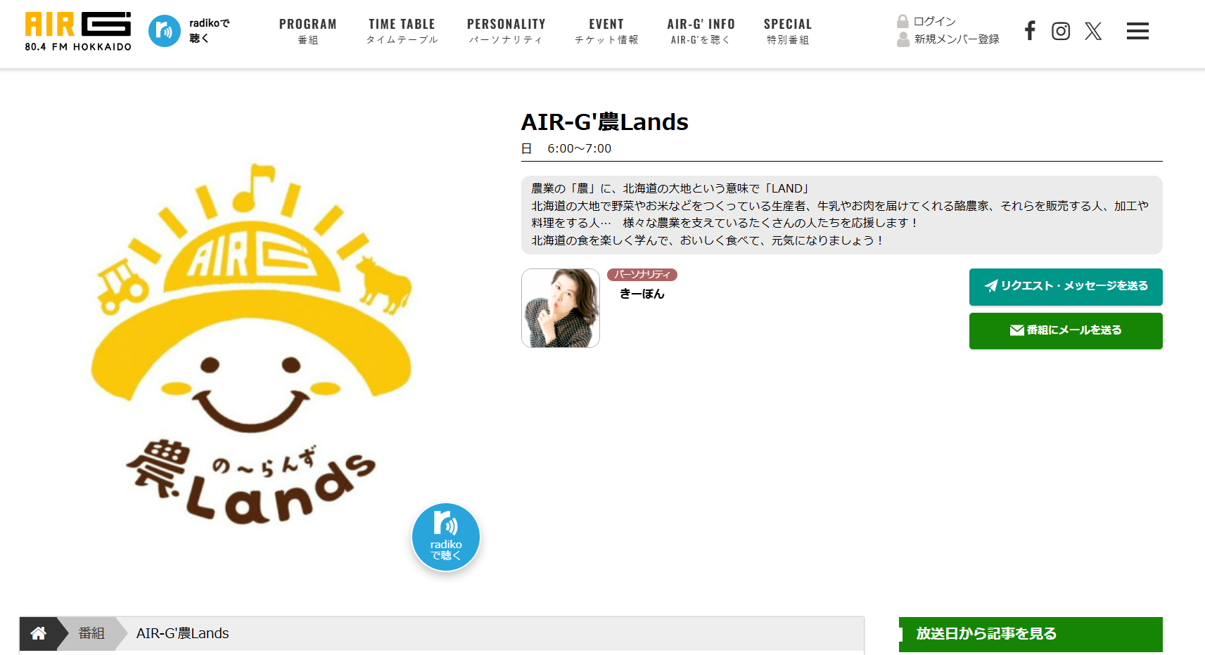 FM北海道 農Lands ホームページより