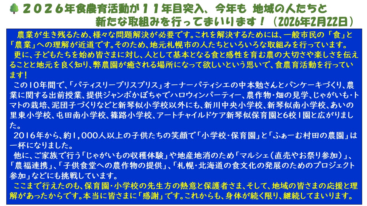 内容は、「札幌の農業」と「ふぁーむ村田の思いと食農育の取組み」について少し語らせていただきました 。