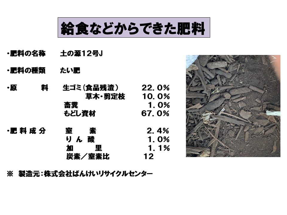 単に学校給食の調理くずや残食のリサイクルだけではなく、食や環境を考え、ものを大切にする子どもを育てることを目指しています。