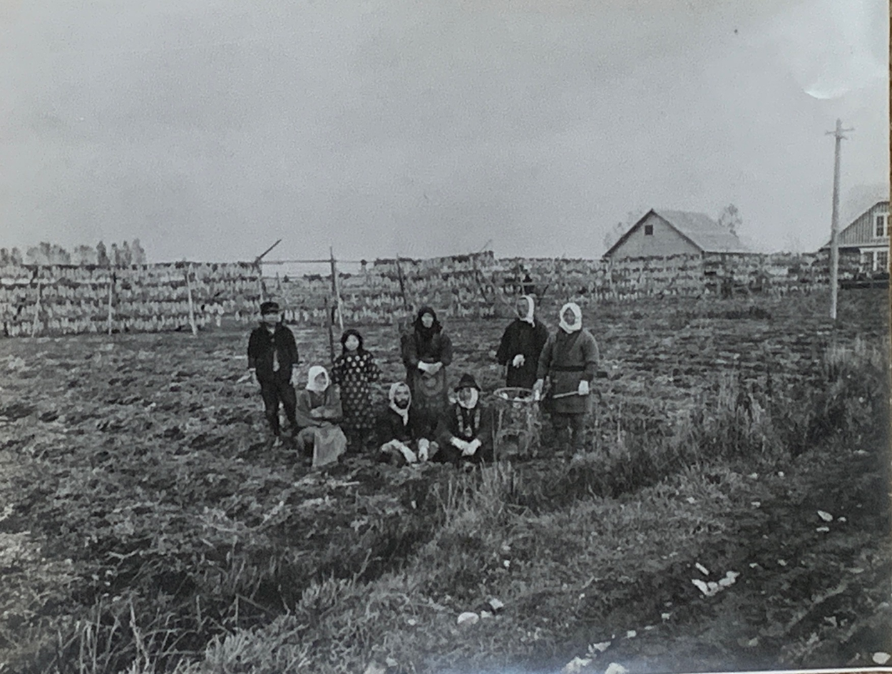 1936年(昭和11年) 北大第二農場前 岩城さん 大根1束 10本